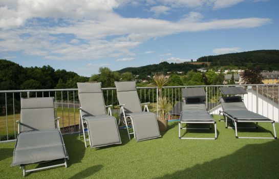 Schöne Dachterrasse und Balkon mit Liegestühlen und Ausblick.Kostenfreie Parkplätze direkt am Haus.Ein reichhaltiges Frühstücksbuffet für eine guten Start in den Tag.Feierlichkeiten aller Art können bei uns im oder außer Haus(Catering) ab 20 Pers. gebucht werden.Kostenfreies W-Lan.